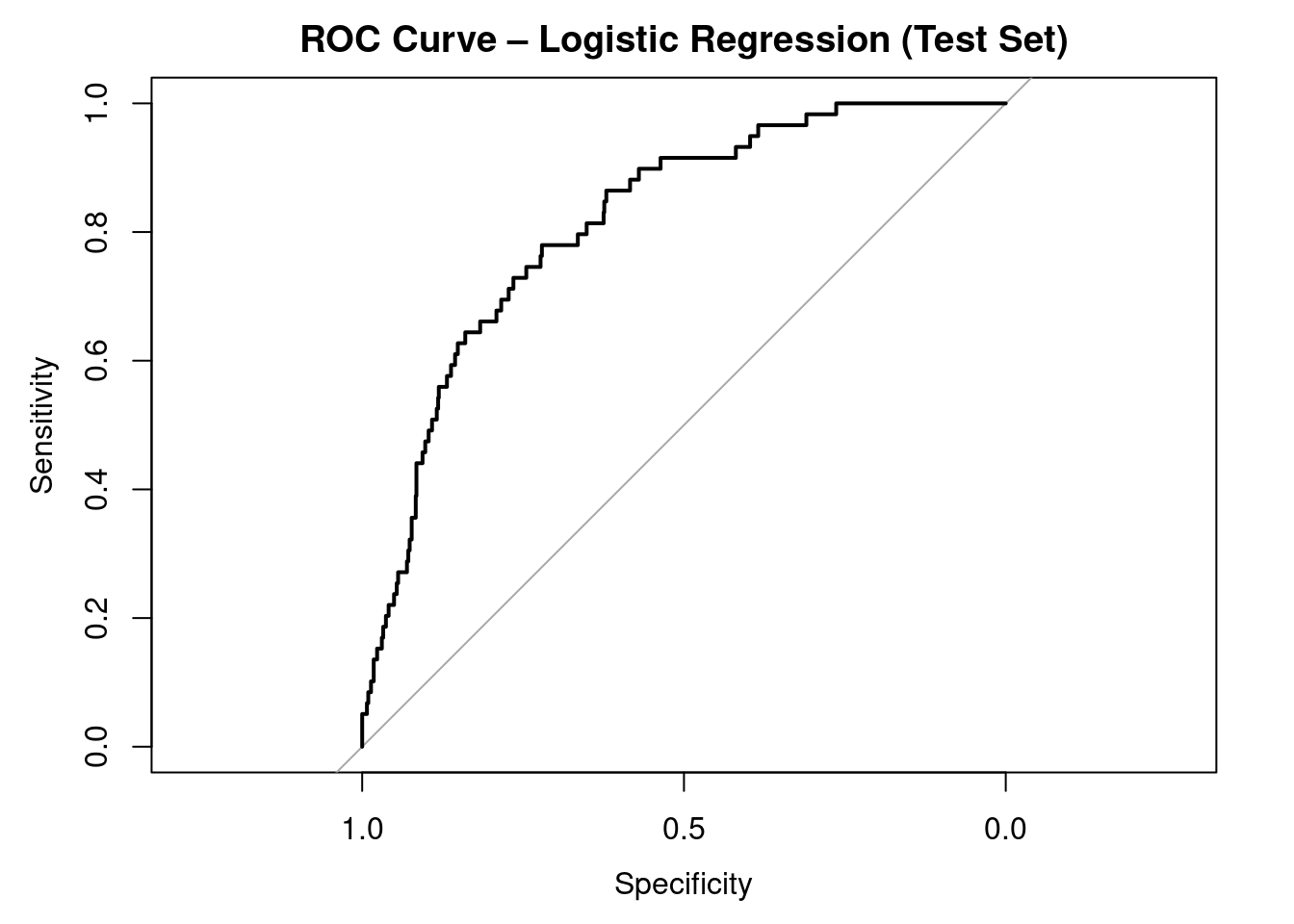 plot(roc_glm, main ="ROC Curve – Logistic Regression (Test Set)")