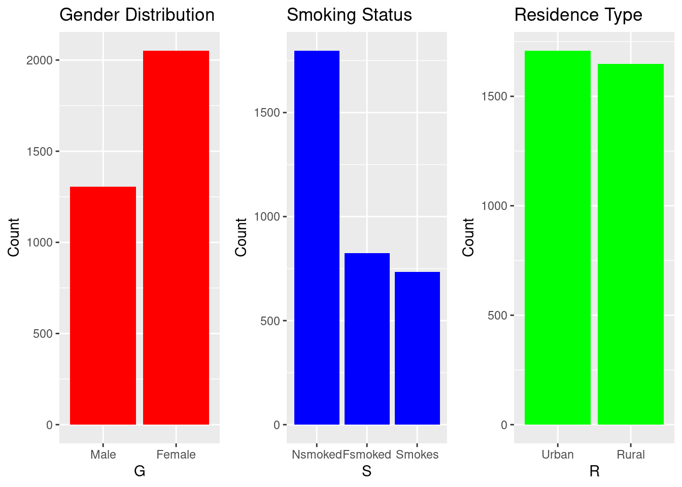 Our datset contains 5,110 observations and 11 predictors commonly associated with cerebrovascular risk. After cleaning missing and inconsistent entries (e.g., “Unknown”, “N/A”, or rare textual categories such as “children” and “other”), a final dataset of 3,357 individuals remained for analysis. The cleaned dataset is stored in the object strokeclean.